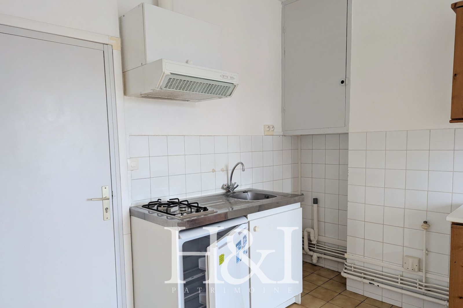 Il se compose d’une cuisine équipée d’un bloc kitchenette (plaques de cuisson, réfrigérateur, branchement lave-linge), d’une chambre avec parquet, ainsi que d’une salle d’eau avec WC.