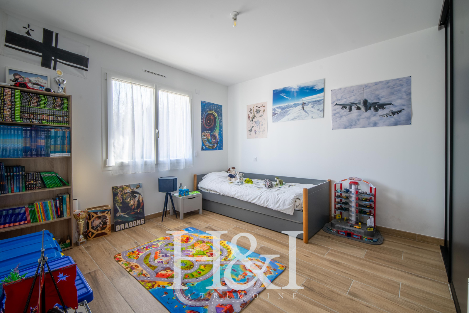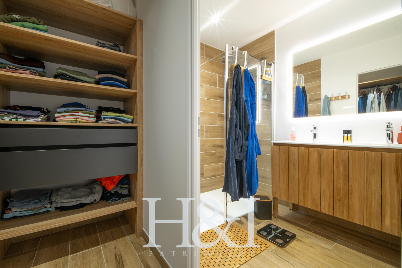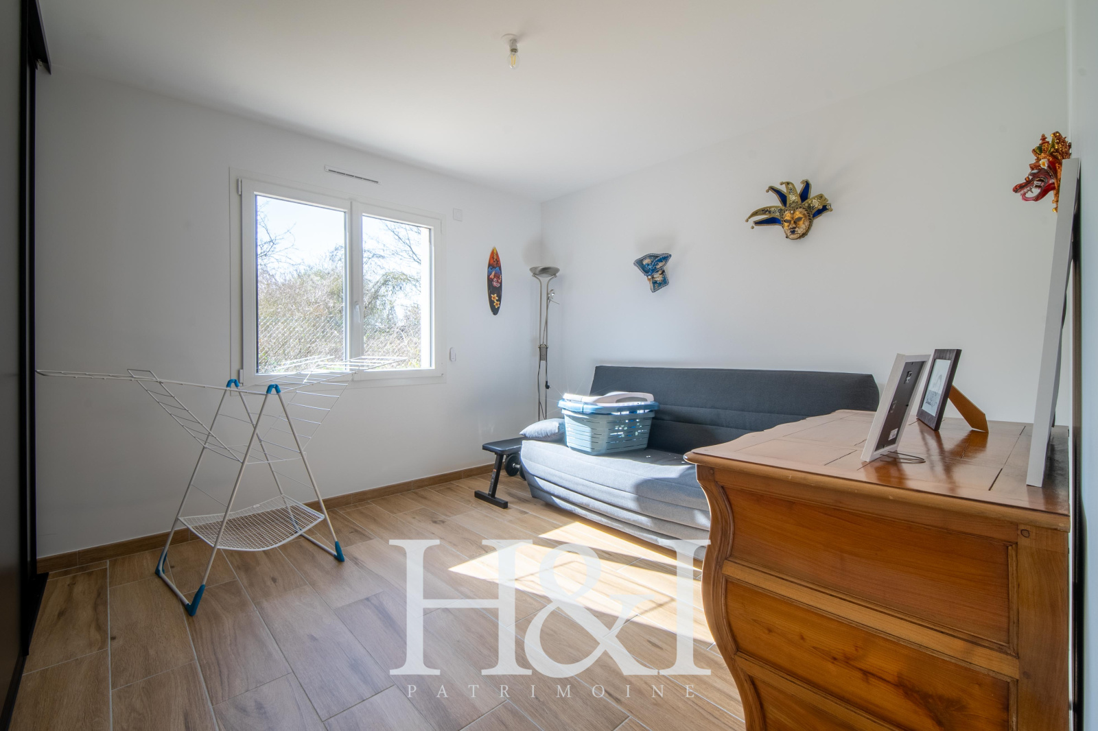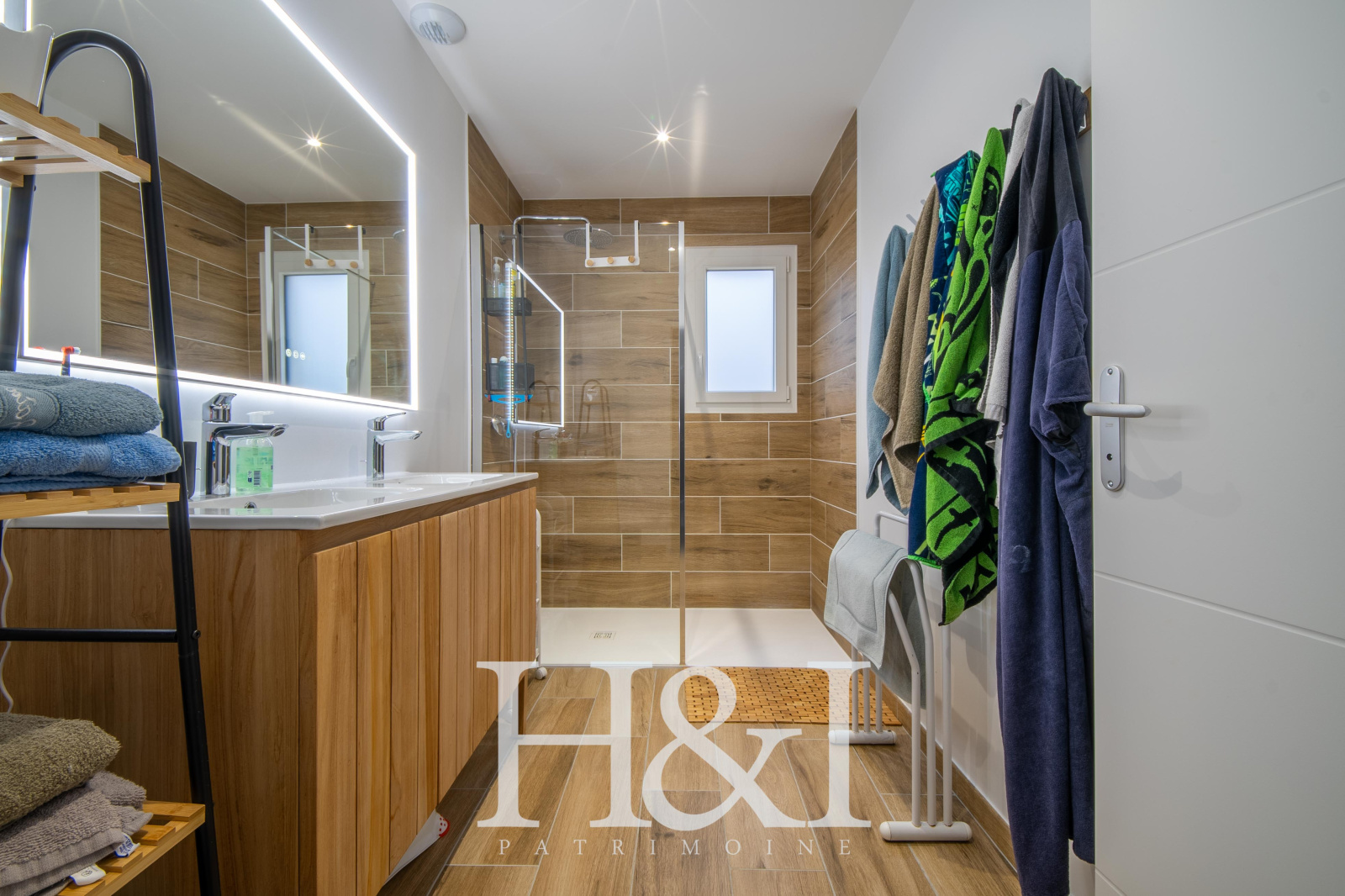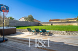 Côté pratique, une buanderie / arrière-cuisine complète l’ensemble et mène directement à un grand garage carrelé et isolé, équipé d’une porte motorisée.