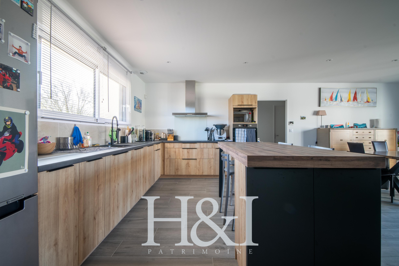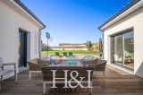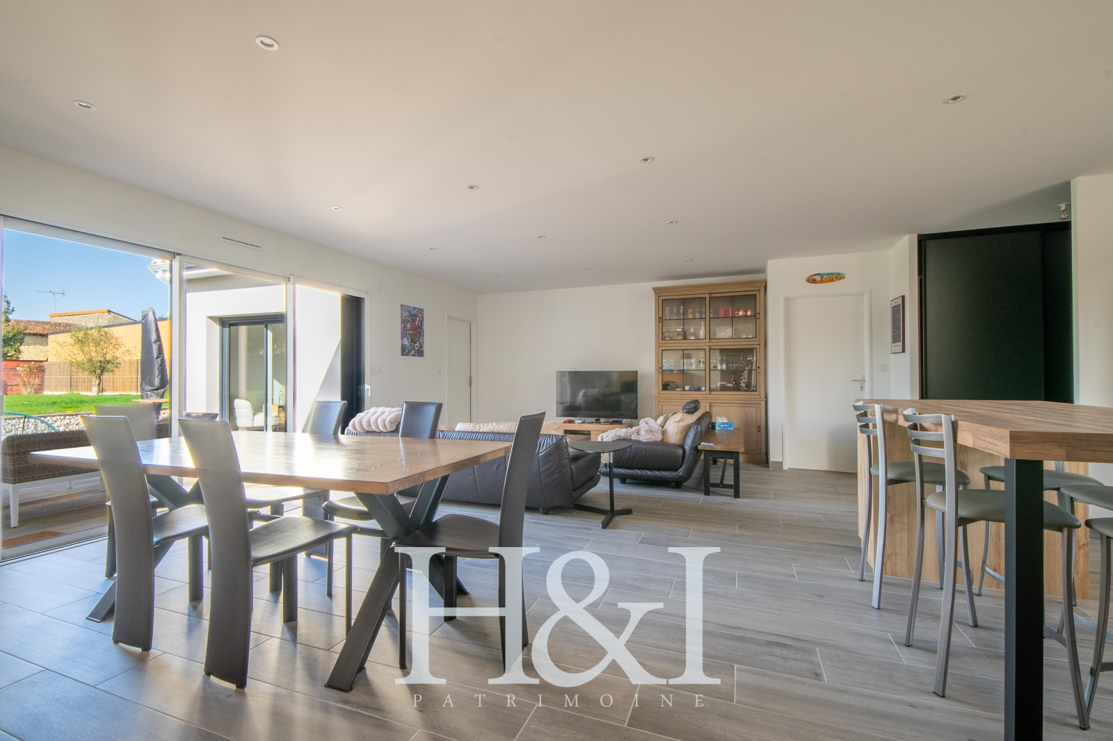 Dès l’entrée, vous êtes saisi par la vaste pièce de vie, baignée de lumière, où la cuisine aménagée et équipée s’intègre parfaitement à l’espace salle à manger et au séjour. La grande baie vitrée en 3 pans prolonge naturellement la maison vers l’extérieur et ouvre sur une généreuse terrasse : un vrai lien dedans-dehors, sans vis-à-vis, idéal pour recevoir ou simplement profiter du calme