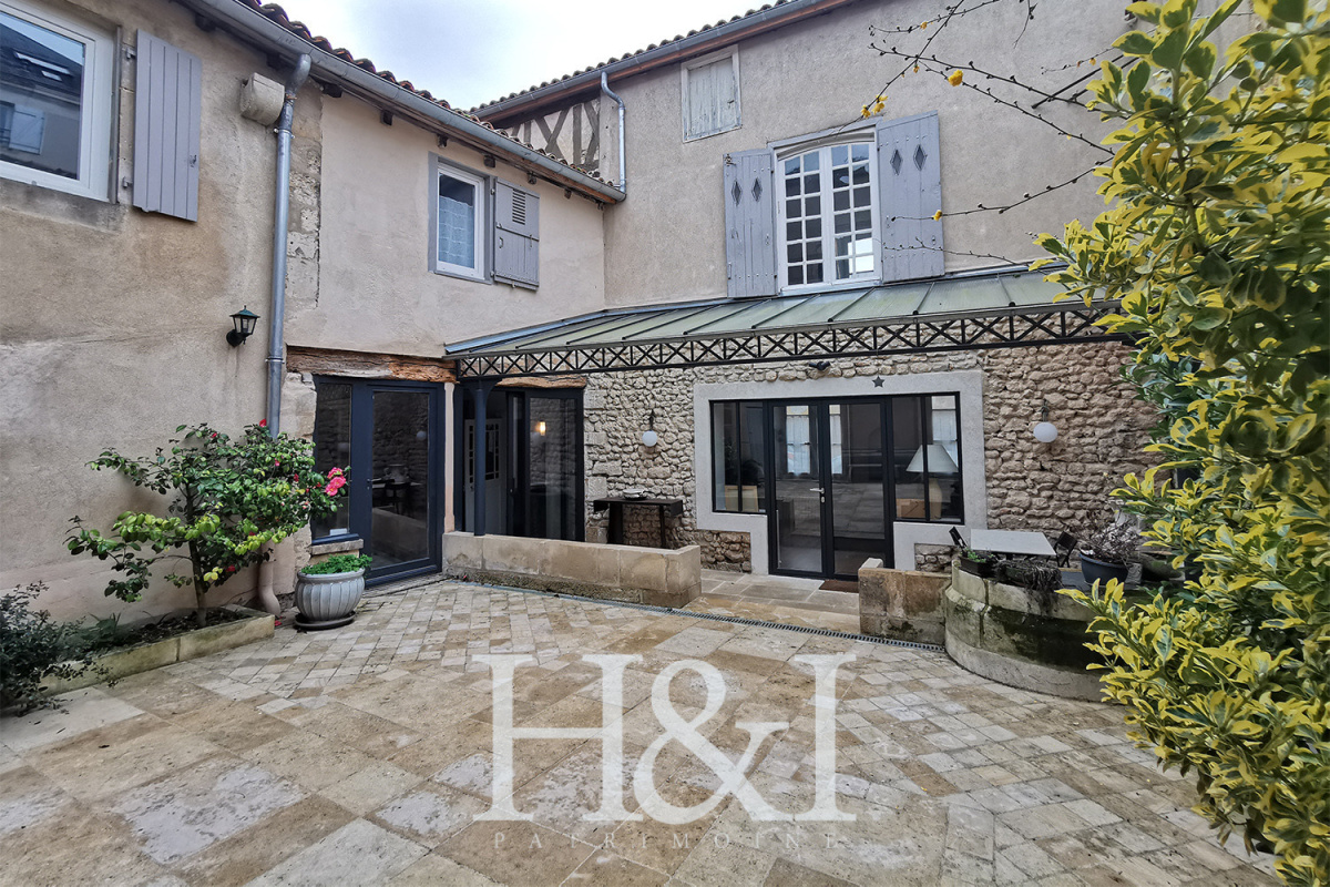 Maison de ville située à Poitiers centre avec un garage et une cour! Venez découvrir ce bien authentique offrant de belles prestations : façade en pierre, escalier ancien, parquet et cheminée ainsi que de beaux volumes pour accueillir une famille. Le rez-de-chaussée est composé d'une entrée desservant d'une part un premier salon donnant sur une cour intimiste et une véranda, d'autre part une cuisine et un deuxième salon/bureau. A l'étage, un grand couloir ouvre sur quatre belles chambres dont deux sur parquet avec placards, un bureau, une salle d'eau avec dressing et WC, une salle de bains et une deuxième salle d'eau avec WC. Un grenier, une cave voutée, une buanderie et un garage viennent compléter ce bien. Huisseries en double vitrage bois, chauffage via chaudière gaz de ville. Montant théorique des dépenses d'énergie pour chauffage et refroidissement d'eau chaude pour usage standard : entre 2820 € et 3860 € / an. Les informations sur les risques auxquels ce bien est exposé sont disponibles sur le site Géorisques http://www.georisques.gouv.fr Prix : 650 000 € frais d'agence inclus (dont 30 000 € TTC d'honoraires à la charge de l'acquéreur), soit 620 000 € hors honoraires.