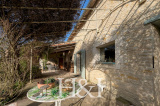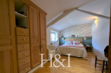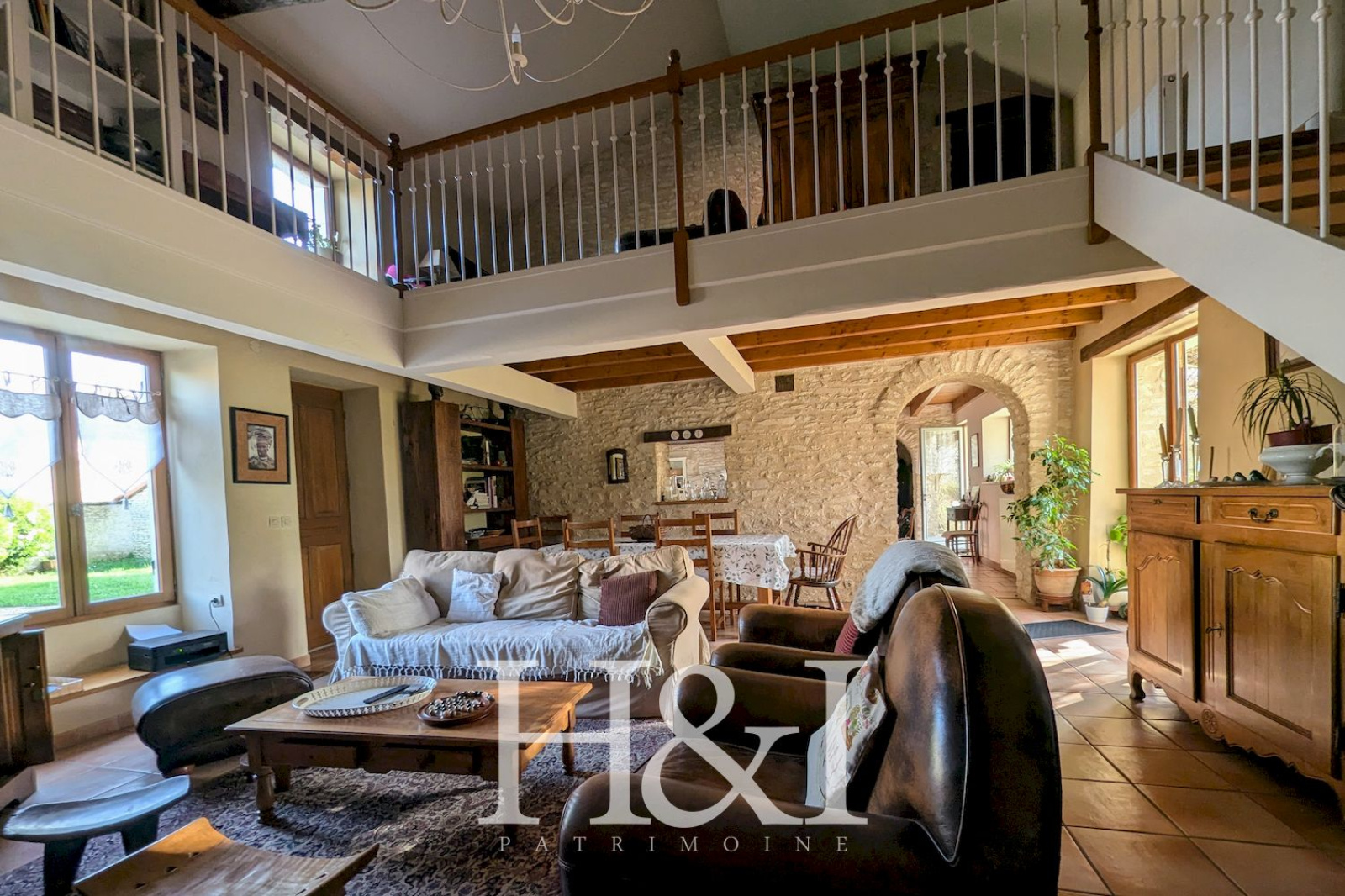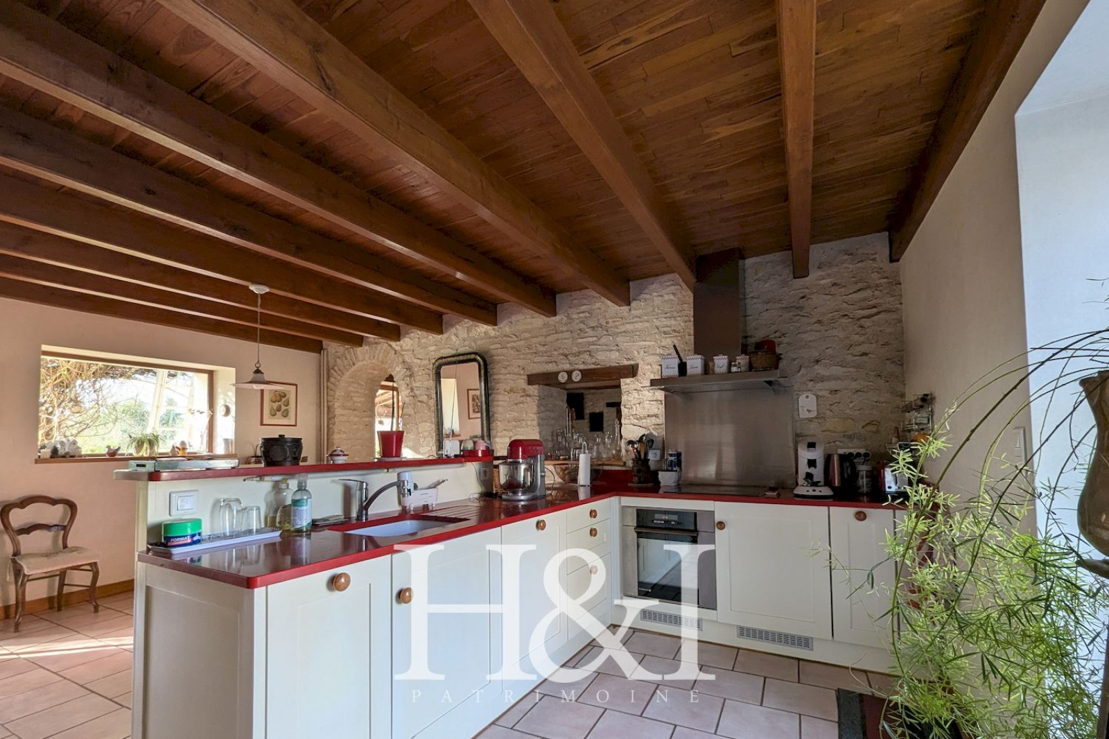 Cette belle longère rénovée a su préserver tout son caractère, notamment grâce à ses façades en pierre apparente. À l’intérieur, murs en pierre et poutres apparentes apportent chaleur et authenticité à des volumes généreux et lumineux.