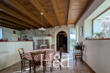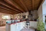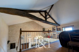 Le rez-de-chaussée offre un salon avec plafond cathédrale et mezzanine, chauffé par poêle à bois ou le chauffage au sol, une cuisine dînatoire, pleine de charme, s’intègre parfaitement dans l’esprit de la maison. Une chambre, une salle d’eau moderne ainsi qu’un WC indépendant.